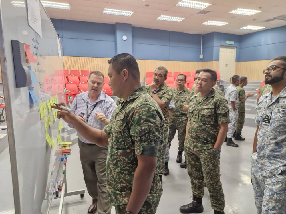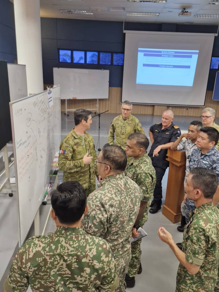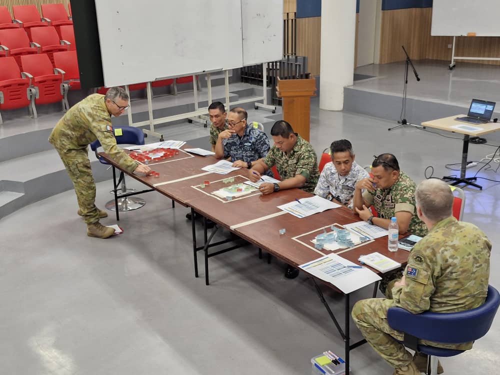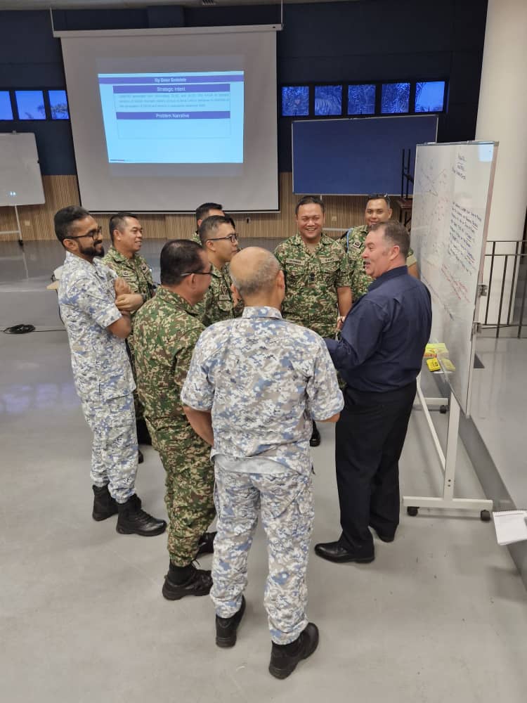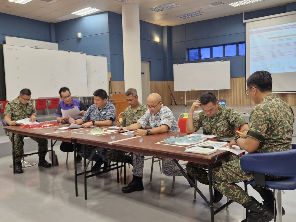 The TTT is an annual programme conducted by MAFSC with the assistance of a Mobile Training Team (MTT) from the Australian Defence Force Warfare Training Centre (ADFWTC). The intensive 4 day programme was conducted from 22 to 25 Jul 24. The programme aimed to prepare MAFSC Faculty Members/Directing Staff (FM/DS) for their roles in directing and mentoring Course Participants on the JMAP during the Military Module in Semester 3. The MTT was led by LTCOL David Ready, Chief Instructor of ADFWTC.