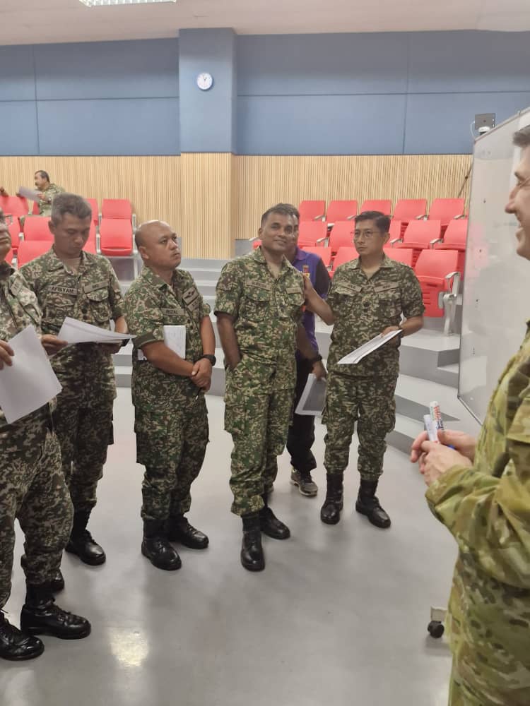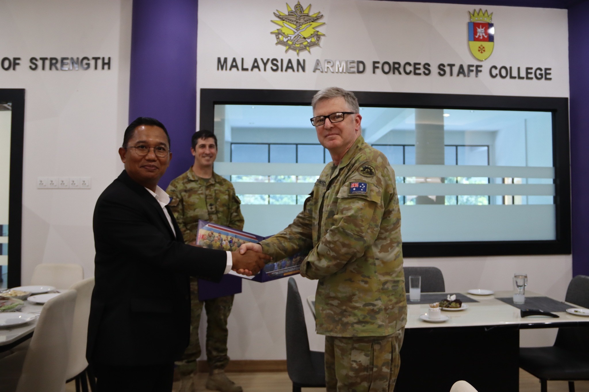 On the final day, Commandant of MAFSC, Brig Jen Zamsari bin Abu Hasan, addressed the MTT, expressing his gratitude and highlighting the importance of this partnership between MAFSC and ADFWTC. The address was followed by an exchange of mementos between both parties. To mark the successful completion of the programme, the College organised an appreciation lunch for the MTT together with Commandant and all FM/DS.