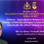 The event convened 210 individuals, including the Faculty Members and Directing Staff (FMDS) of MAFSC alongside 176 CP, reinforcing the significance of interdisciplinary learning and strategic discussions within the defence and academic communities. The guest of honour for this session was His Excellency Noriyuki Shikata, Ambassador of Japan to Malaysia, who delivered an insightful lecture on โMalaysia-Japan Bilateral Relations Towards a Comprehensive Strategic Partnership & Japanโs Policy on a Free and Open Indo-Pacific.โ