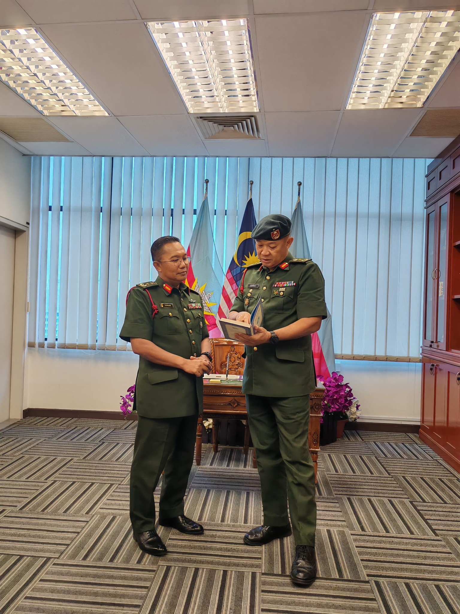 𝐏𝐮𝐭𝐫𝐚𝐣𝐚𝐲𝐚, 𝟑 𝐉𝐮𝐥 𝟐𝟓. The Commandant of Malaysian Armed Forces Staff College (MAFSC) graciously received a courtesy visit from Brigadier General Dzeidi Schaff bin Jamaludin, Inspector General of Malaysian Defence Intelligence Organization (MDIO) in conjunction with his upcoming retirement. The visit served as a meaningful opportunity to strengthen professional ties and reflect on the invaluable contributions made by Brigadier General Dzeidi Schaff throughout his service. The warm and cordial discussion highlighted shared experiences, mutual respect and the importance of maintaining strong professional relationships within the defence community.