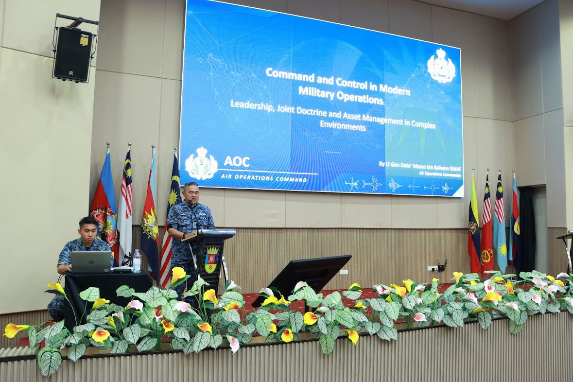 The lecture, titled Command and Control in Modern Military Operations: Leadership, Joint Doctrine and Asset Management in Complex Environments, addressed the critical roles and functions of an Air Operations Commander in war, peacetime, conventional warfare and military operations. Lt Gen Dato’ Masro bin Kaliwon RMAF emphasised the importance of Command, Lead and Manage (CLM) in today’s complex environment, highlighting the balance between operational demands and the need to preserve vital assets.