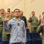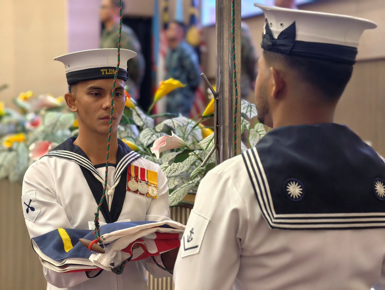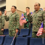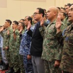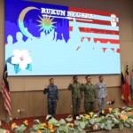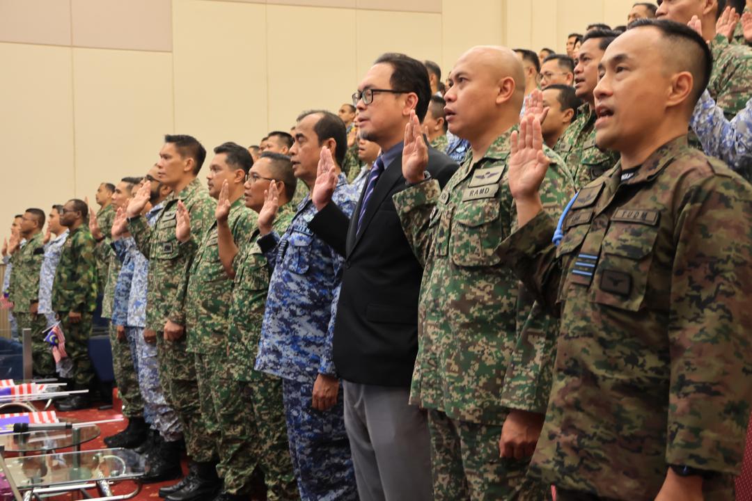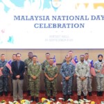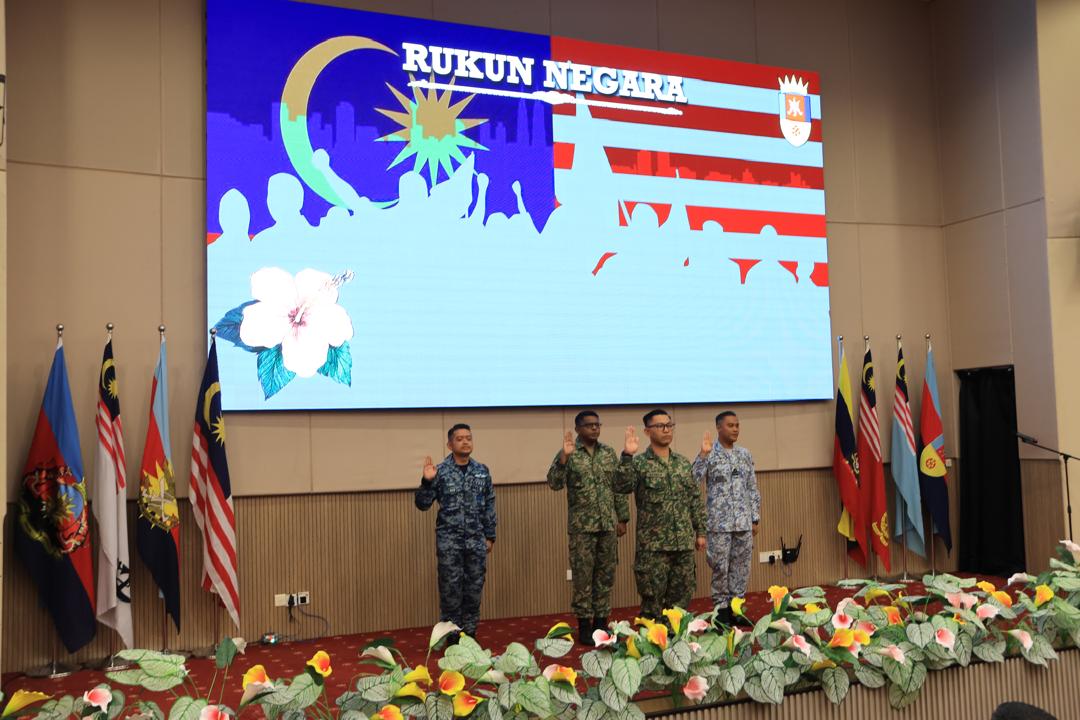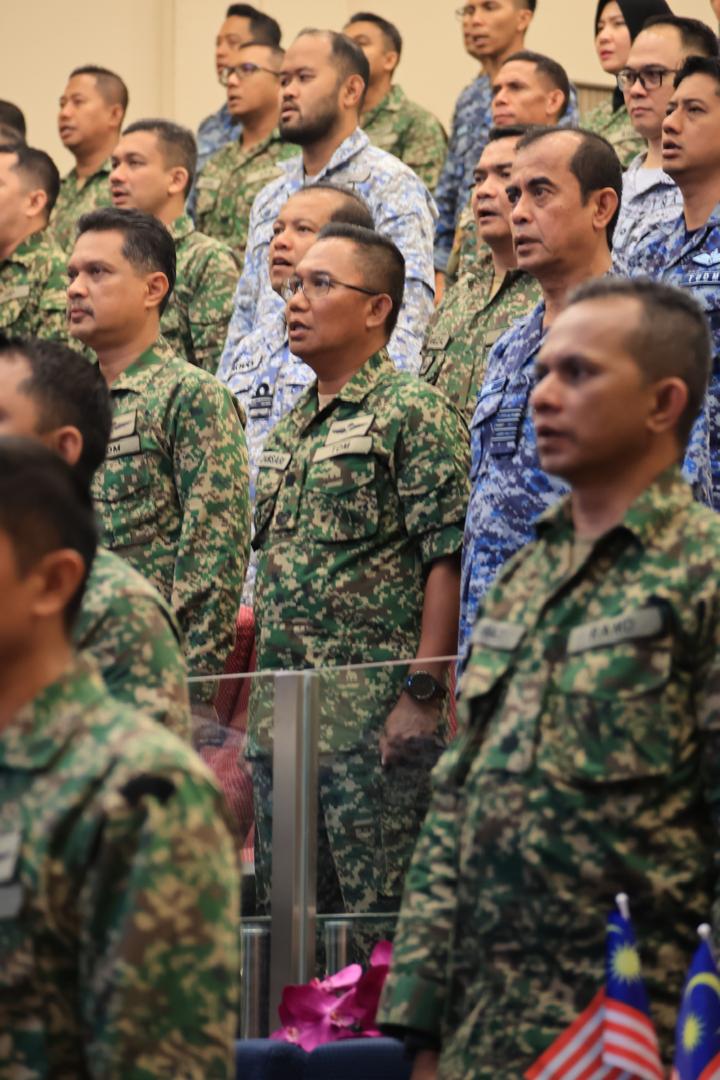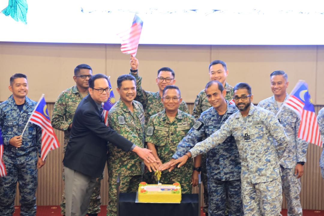 The programme continued with a video montage portraying Malaysia’s struggles, achievements and progress towards modernisation, intertwined with rich cultural values symbolising national identity. The patriotic spirit was heightened with the singing of Jalur Gemilang by all Malaysian participants, before concluding with the traditional pulut kuning cutting ceremony, officiated by the Commandant alongside distinguished guests.