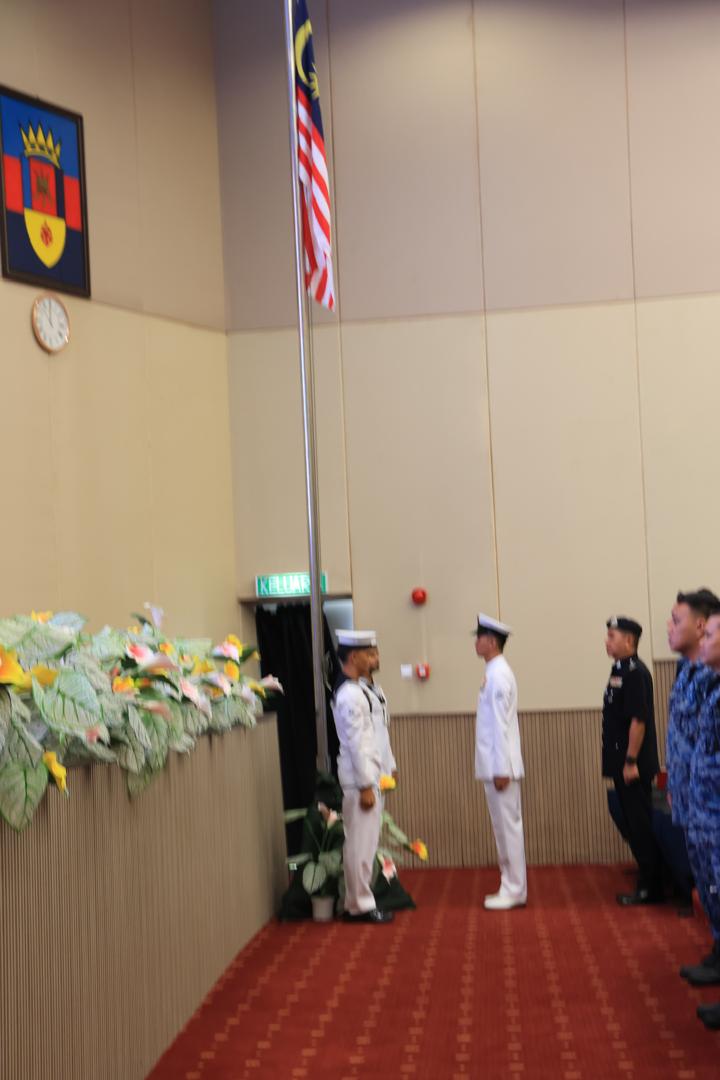 The programme, led by Directing Staff Sponsor Lieutenant Colonel Haji Mohamad Ijas bin Saidun Zubir RMAF and the National Day Organising Committee, was graced by Brigadier General Zamsari bin Abu Hassan, Commandant of the Malaysian Armed Forces Staff College. The celebration commenced with a moment of silence to honour the nation’s heroes, followed by the recitation of the Rukun Negara, led by the Course Leader and joined by all participants. The atmosphere was further enlivened by a poem recital from Sub-Inspector Yusuf bin Ramji, winner of the 2024 National Poem Competition.
