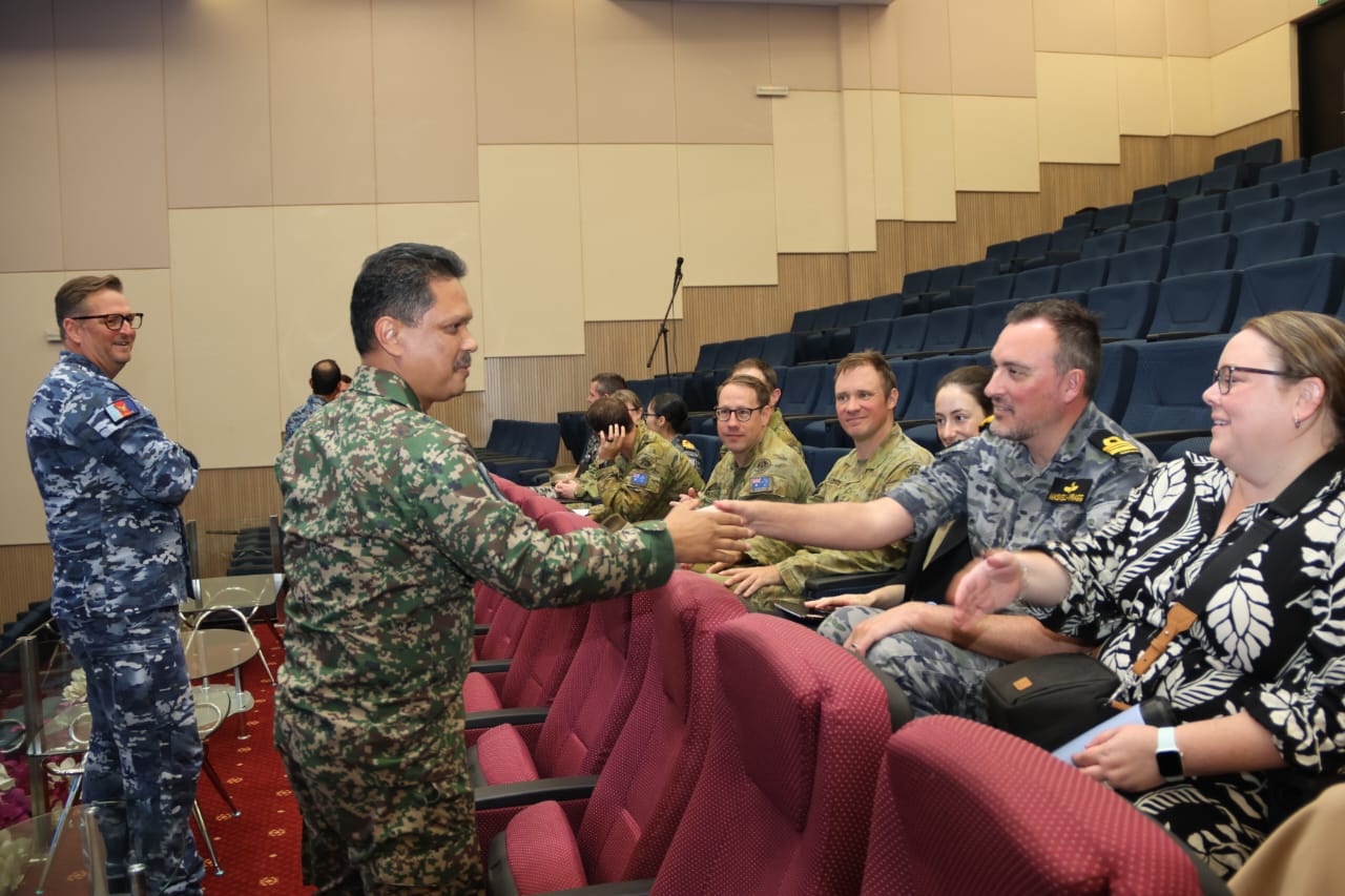 During the visit, the delegation paid a courtesy call to the MAFSC Chief Directing Staff and attended a briefing on MAFSC by GSO 1 TD, followed by an Academic Talk by MAFSC Distinguished Fellow titled “𝐀𝐮𝐬𝐭𝐫𝐚𝐥𝐢𝐚-𝐌𝐚𝐥𝐚𝐲𝐬𝐢𝐚 𝐒𝐭𝐫𝐚𝐭𝐞𝐠𝐢𝐜 𝐂𝐨𝐧𝐯𝐞𝐫𝐠𝐞𝐧𝐜𝐞: 𝐘𝐞𝐬𝐭𝐞𝐫𝐝𝐚𝐲, 𝐓𝐨𝐝𝐚𝐲 𝐚𝐧𝐝 𝐓𝐨𝐦𝐨𝐫𝐫𝐨𝐰”. The ACSC delegation was then brought to observe training activities conducted in the Syndicate Room and the Model Room which had been arranged as a Joint Operations Planning Group (JOPG). Throughout the visit, the ACSC delegation was exposed to training activities at the joint force level and exchanged views with Course Participants from the Malaysian Command and Staff College Cohort 54/25. The discussion focused on course/curriculum modules and the challenges faced by both colleges in their academic programs.