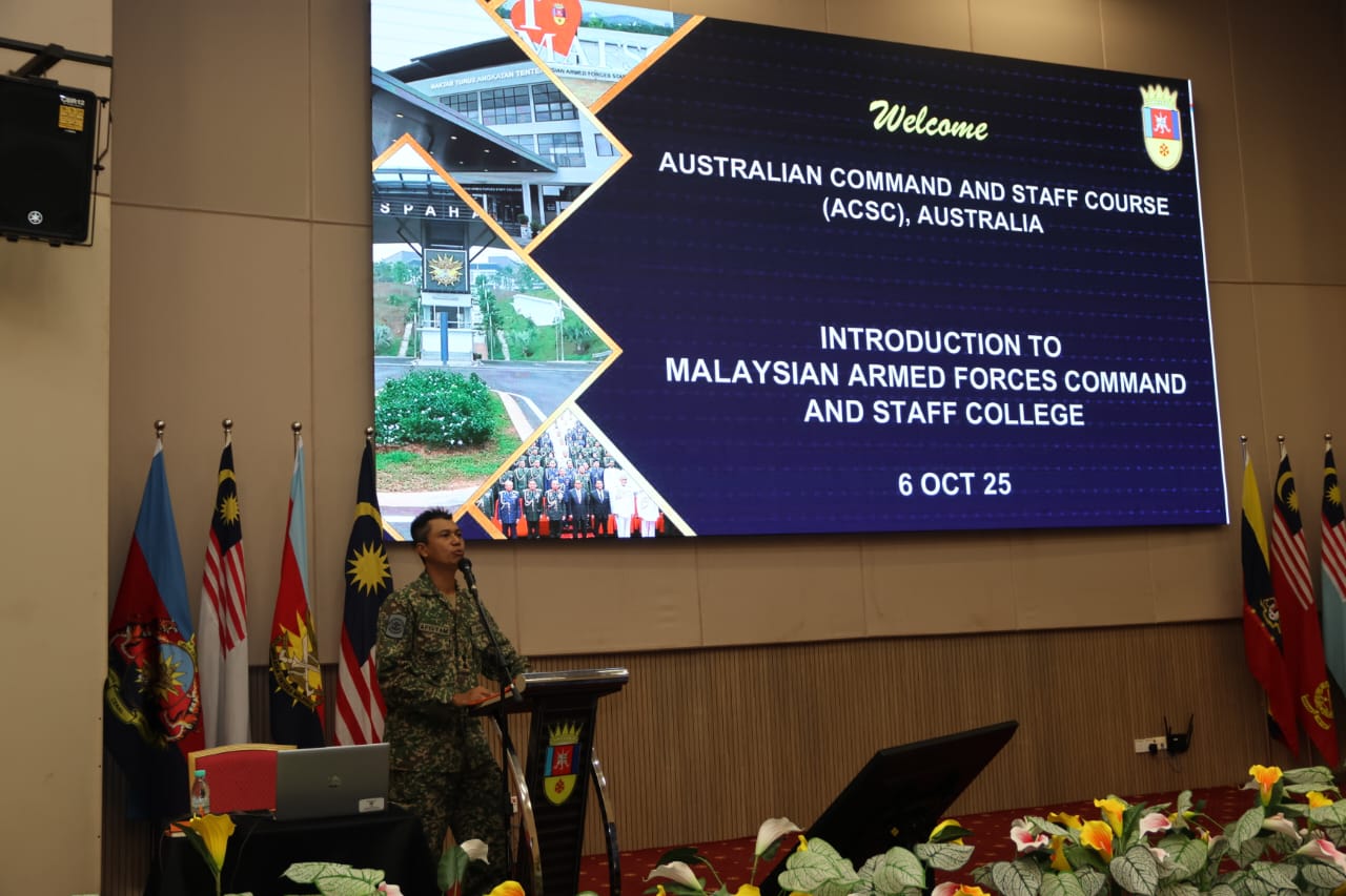 𝟔𝐭𝐡 𝐎𝐜𝐭𝐨𝐛𝐞𝐫 𝟐𝟎𝟐𝟓 : The Australian Command and Staff College (ACSC) visited the Malaysian Armed Forces Staff College (MAFSC) as part of an ongoing effort to strengthen collaborative ties between the two colleges. The ACSC delegation, led by Gp Capt Timothy Anderson, comprised three Directing Staff members, ADA and 10 Course Participants. The visit aimed to share knowledge and insights to enhance cooperation between the colleges.