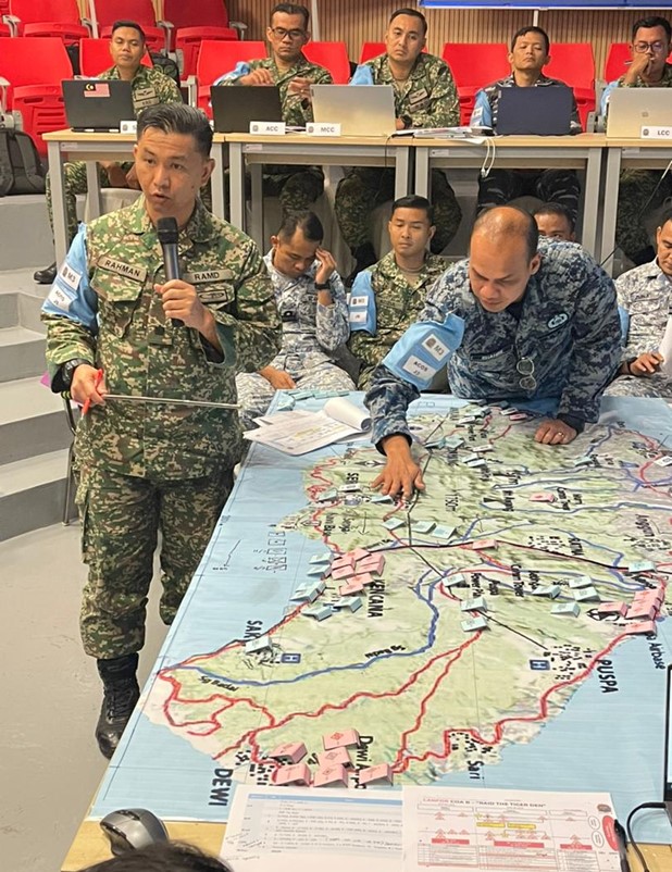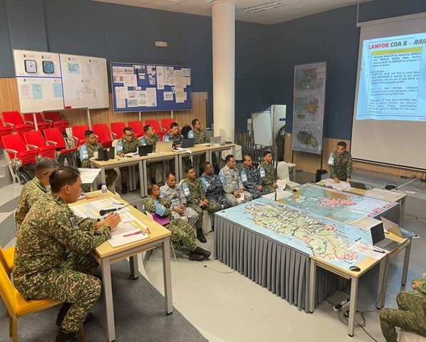 Another milestone was achieved at the Malaysian Armed Forces Staff College (MAFSC) as Course Participants (CP) of Cohort 54/2025 conducted the Course of Action (COA) Analysis and Wargaming phase under Ex DALAUD BERSATU. The wargame serves as a critical analytical step in the Joint Military Appreciation Process (JMAP), designed to test the validity and feasibility of each COA. Through the wargaming process, CP was divided into eight Joint Operations Planning Groups (JOPG), identified potential Decision Points (DP), anticipated threat reactions and refined their plans to achieve greater operational synchronisation and decision advantage.